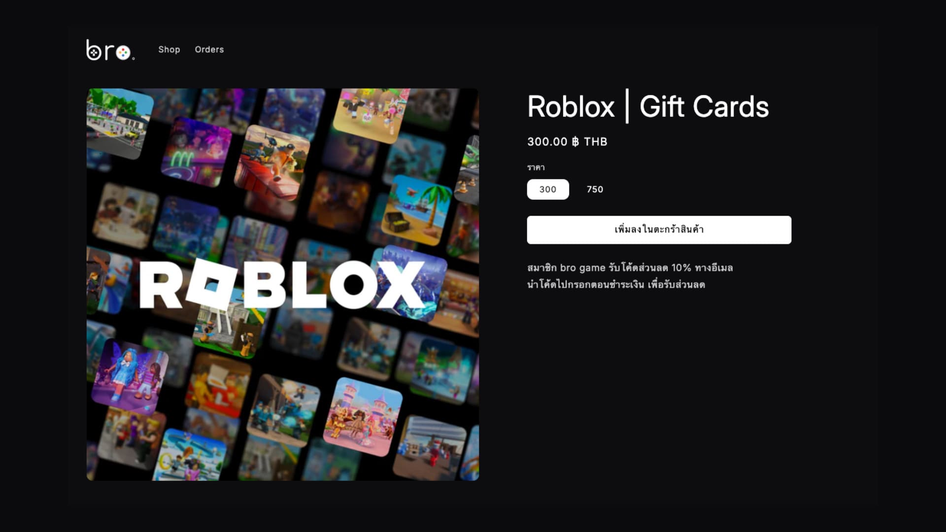 สำหรับแลก Robux ไว้ซื้อไอเทมในเกม Roblox มี 2 ราคา คือ 300 และ 750 บาท